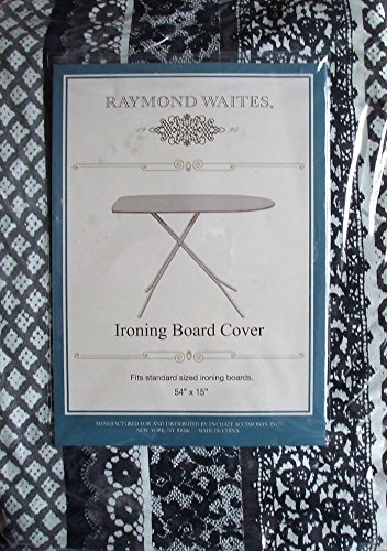 -. Binding : Kitchen -. Brand : Raymond Waites -. Color : Black -. EAN : 0080995535039 -. Feature : Black, Gray and white stylish P.R.Inted lace ironing board cover from Raymond Waites. Padded. 100% cotton. Machine wash for care. Fits only standard ironing boards measuring 54" X 15". -. IsAutographed : 0 -. Label : Raymond Waites -. Manufacturer : Raymond Waites -. ProductGroup : Home -. ProductTypeName : HOME -. Publisher : Raymond Waites -. Studio : Raymond Waites -. Title : Raymond Waites Black White & Gray Lace P.R.Inted Padded Ironing Board Cover -. UPC : 080995535039