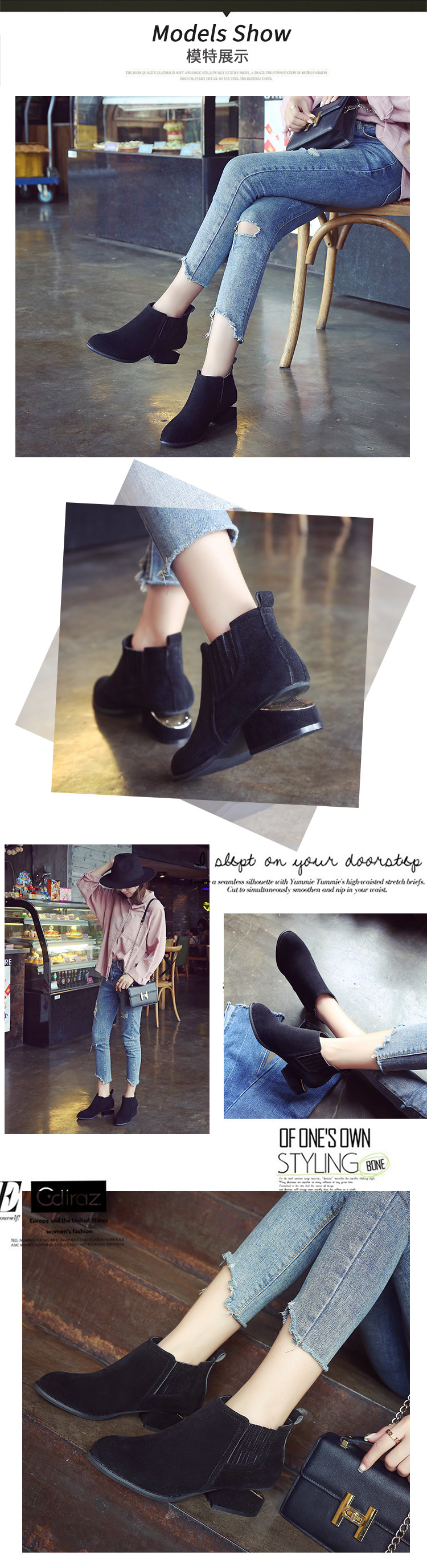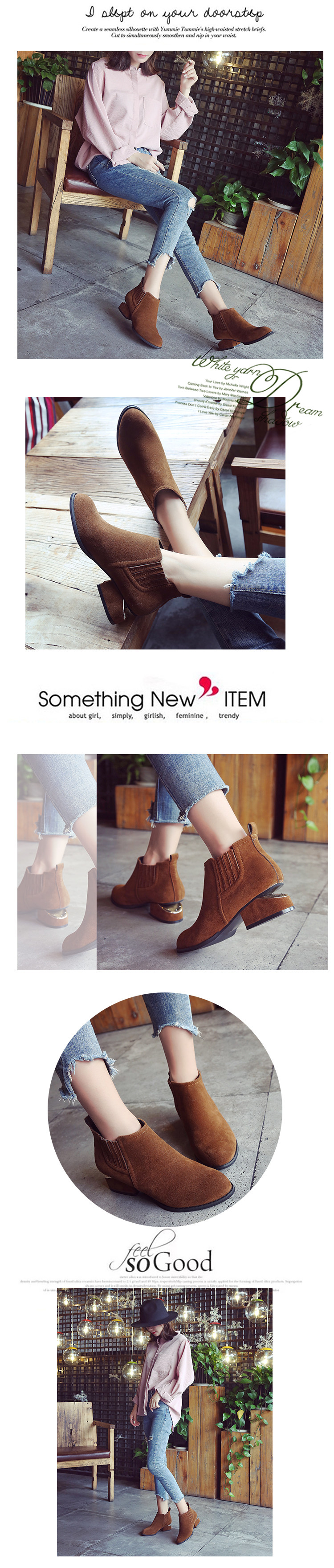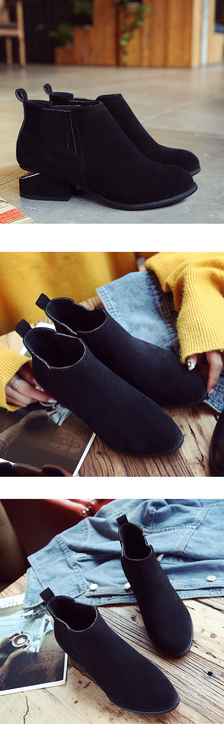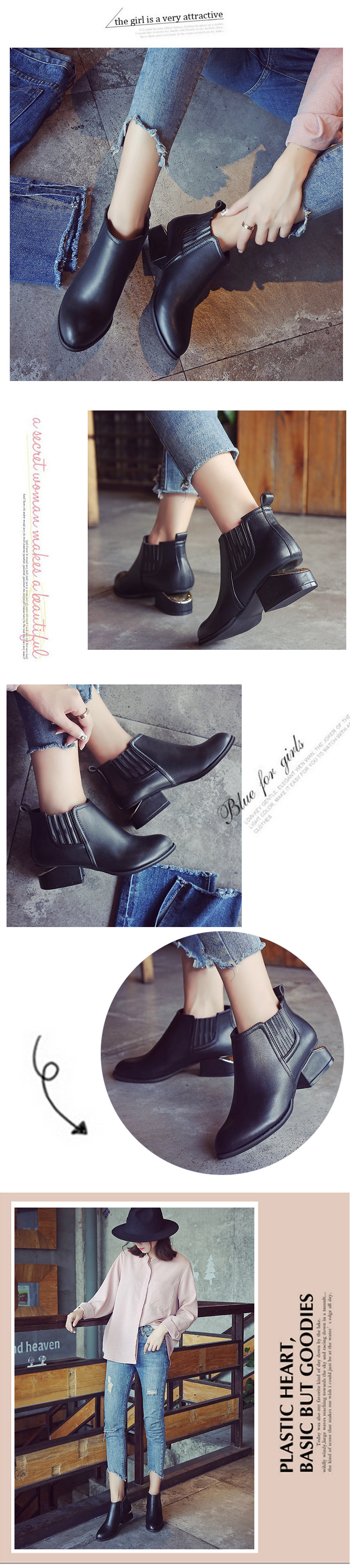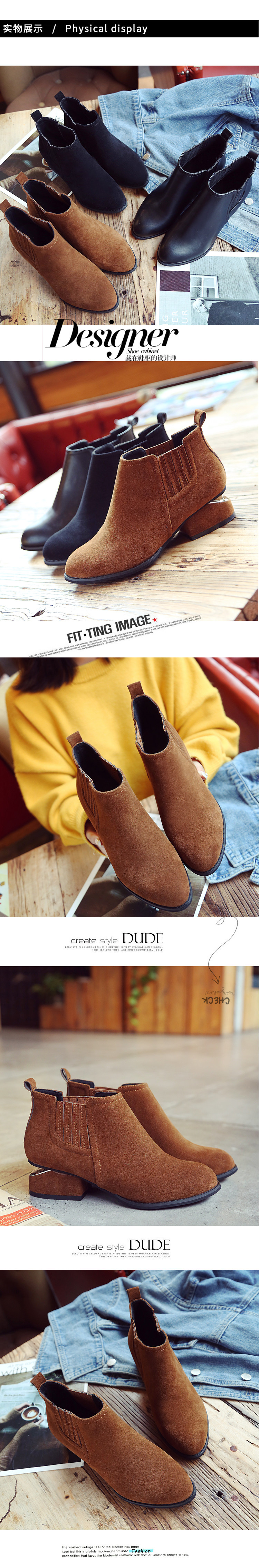 春秋单靴新款尖头马丁靴女 英伦风切尔西短靴女粗跟