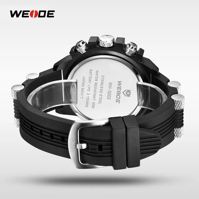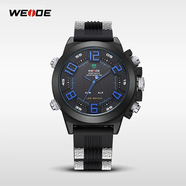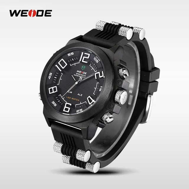 웨이드 브랜드 남성 스포츠 시계 물 저항 남자 실리콘 밴드 남성 석영 캐주얼 군사 시계 시간 다기능 손목