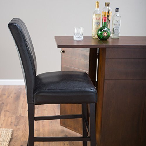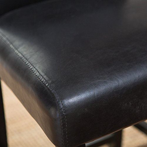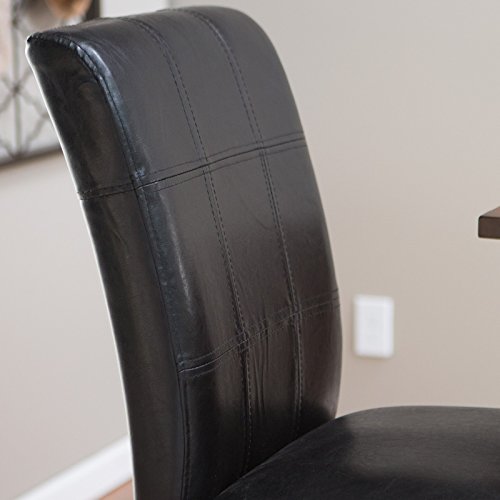 -. Feature : Durable wood legs and frame in rich espresso / Black faux leather upholstery / Stitching detail in grid pattern on seat back / Contemporary style / Dimensions: 18.5W x 19.5D x 49H in.; Seat: 34H in.