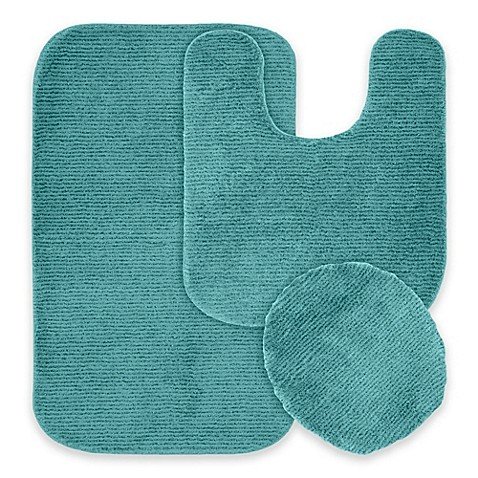3 Piece Bath Rug Set Teal Bathroom Mat Contour Rug Lid Cover Non Slip latex Bottom