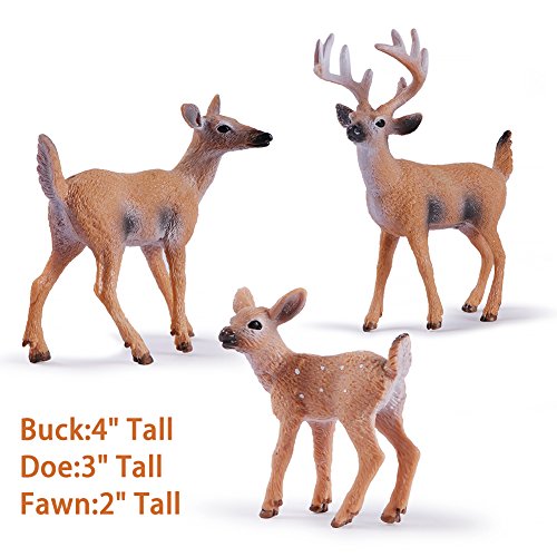 -. Feature : DEER FAMILY X 2: two complete different color white tailed deer families each with a buck, doe and fawn toy figures / BEAUTIFULLY PAINTED: Natural appearance and color- tan color with white underbelly & tail and grey & white accents,animal sets are high quality, each figure is finely hand painted and sculpted by experts which ensures authenticity. / MULTI-USE: Great for amas,landscape scenes,imaginative play,birthday cake & party theme decor etc. / HEIGHT: 1:16 scale,Buck is 4 inches tall, doe is 3 inches tall, fawn is 2 inches tall / The white-tailed deer is the symbol for nine states in the USA and two Canadian provinces