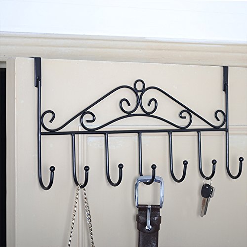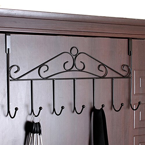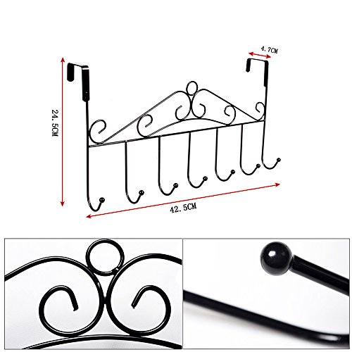 Over the Door Hooks,Stainless Steel Closet Hanger Rack,7 Hooks Black Metal Hanging Storage Holder Organizer for Coats,Hats,Robes,Purses,Scarves,Clothes,Jackets,Belt,Towel,Home Office Cabinet Gift Use
