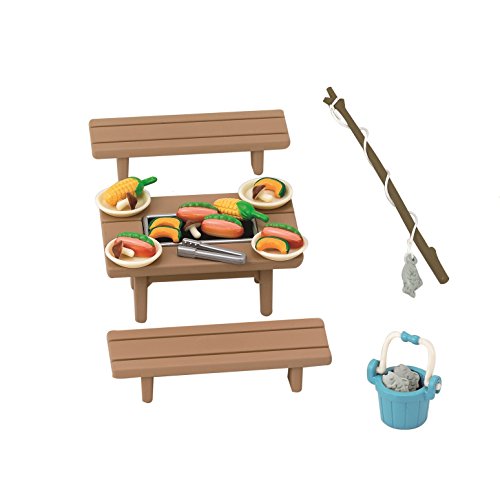 Because in the center of the table marked with barbecue stove you can cook vegetables and caught fish. 4 servings of tableware and vegetables hot dogs are also included fishing rod and bucket.