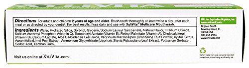 Other Ingredients: Water, Hydrated Silica, Sorbitol, Sodium Lauroyl Sarcosinate, Natural Flavor, Titanium Dioxide, Sodium Ascorbyl Phosphate (Vitamin C), Tocopheryl Acetate (Vitamin E), Retinyl Palmitate (Vitamin A), Cholecalciferol (Vitamin D), Calcium Lactate, Aloe Barbadensis Leaf Juice, Vaccinium Macrocarpon (Cranberry) Fruit Powder, Xylitol, Citrus Aurantifolia (Lime) Peel Extract, Ammonium Glycyrrhizate (Licorice), Stevia Rebaudiana Extract, Potassium Sorbate, Sorbic Acid, Xanthan Gum.