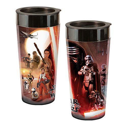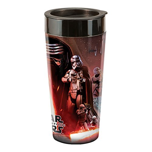 Studio : Vandor Publisher : Vandor Binding : Kitchen Product Description Feel like you need to get away to a galaxy far, far away? Stay quenched along the way with Vandor's Star Wars Episode VII 16 Ounce Plastic Travel Mug. This lightweight, travel mug features a secure snap on lid and a double wall to keeps drinks hot or cold. With designs of your favorite space travelling heroes and villains, this mug is perfect for hydrating on the go. Hand washing is recommended. Making retro cool since 1957, legends live on at Vandor - suppliers of hip and functional products for fans of all ages. 0