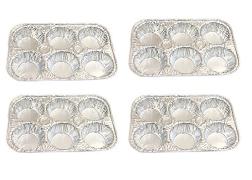 Product Description Pack of 4 disposable aluminum foil muffin pans. Each pan has 6 compartments. Great for muffins, cupcakes. Made in USA. Recyclable aluminum. Dimensions: 9.75" L x 6.5" W x 1.25" H 0