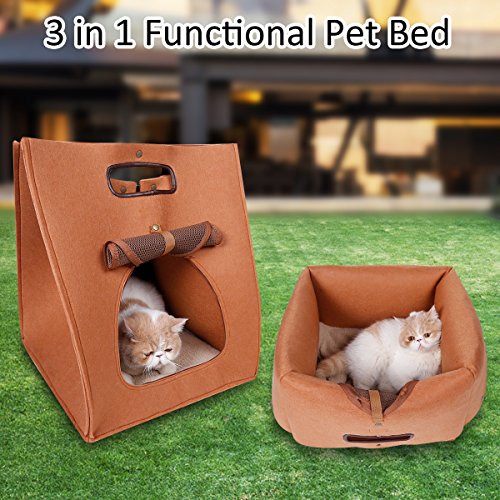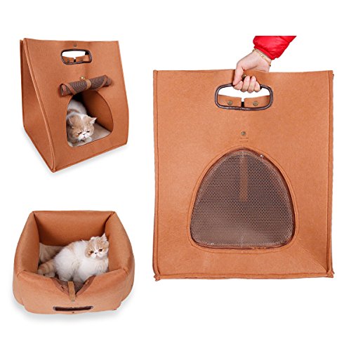 (SunnyLucky)/Pet Supplies/Carriers Travel Accessories/DIRECT FROM USA/SunnyLucky Pet Cat Carrier, Folding Portable Wool Felt Cave Bed Travel Bag For Cat Puppy 3 In ...