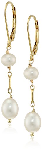 -. Feature : Gold-plated drop earrings featuring two freshwater cultured pearls set beneath lever-back closures / Lever backing / The natural properties and process of pearl formation define the unique beauty of each pearl. The image may show slight differences in texture, color, size, and shape. / Carved rings are naturally occurring imperfections that result from the pearl rotating inside the mollusk as it is growing. They define the unique beauty of each pearl and may vary in size, number, and depth per pearl. / Made in the USA