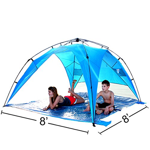 EASYGO SHELTER XL - INSTANT BEACH UMBRELLA TENT POP UP EASY UP CANOPY SUN SPORT SHELTER WITH PVC FLOOR - 8 FOOT X 8 FOOT XL SIZE.