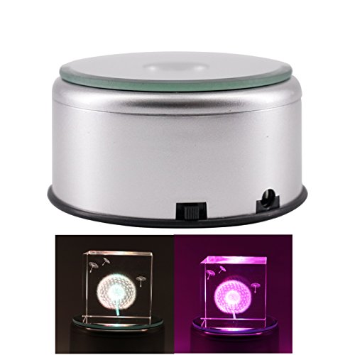 Finaze Laser Etched Crystal Display Base 7 LED Lighted Silver