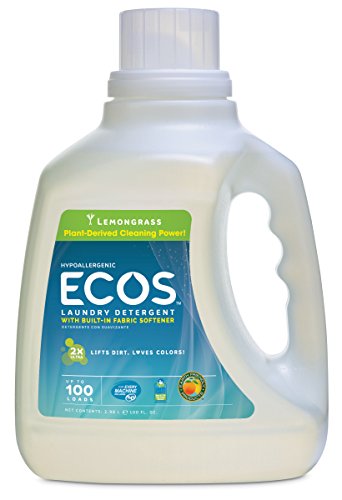 Earth Friendly Products ECOS 2x Liquid Laundry Detergent With Built In Softener, Lemongrass, 100 Loads, 100-Ounce Bottle (Pack of 2)