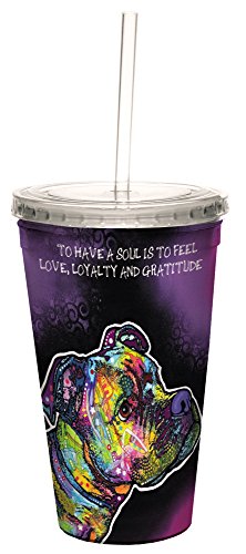 Tree-Free Greetings 98205 Dean Russo Dog Soul Double-Walled Cool Cup with Reusable Straw, 16-Ounce