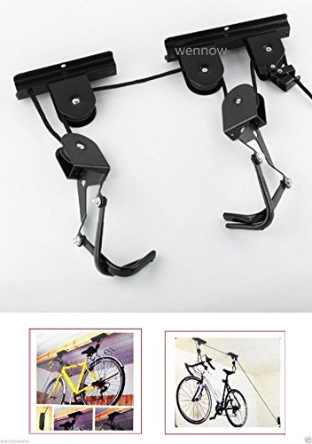 (WennoW)/Cycling Wheel Sports/Accessories/DIRECT FROM USA/Wennow Set of 2 Ceiling Mounted Bike Lift For Garage s teel Brackets With Pulley Hooks