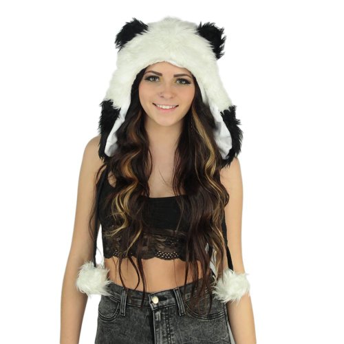 - Title : iHeartRaves Short Panda Furry Hood - White/Black, One Size