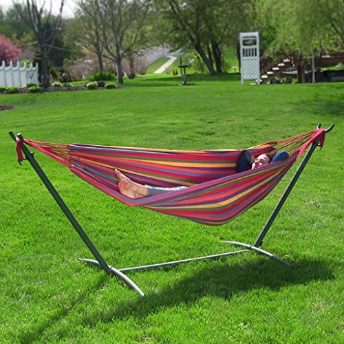 - Feature : Dimensions 108in long, 40in wide, 48in tall / 450 lb. weight limit. Includes vinyl carrying case for easy transport for camping or traveling. / 5 adjustable settings fit BRAZILIAN HANGING hammocks (see picture) 10ft-12.5ft long (Note: does not work with spreader bar hammocks) / No tools required. Hand tightened hardware, Easy assembly. / 1yr warranty