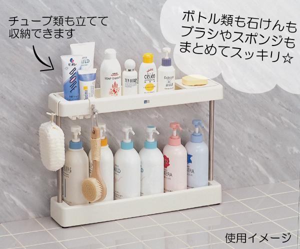 シャンプーなどのボトル類や石鹸をすっきり収納☆チューブ類も立てて収納可能です。 |