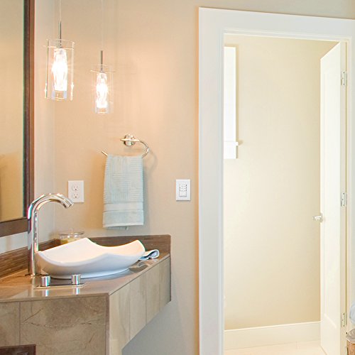 - Blue LED light STAYS ON, easy to locate in darkness. Ideal for bathroom, closet, pantry, garage, laundry room, spa…Bedroom is not recommended for this feature