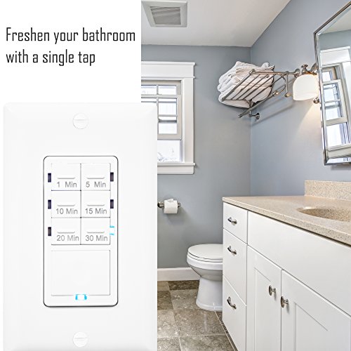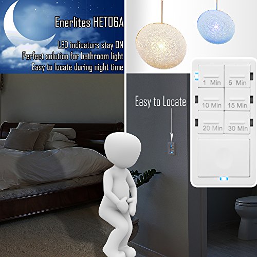 Enerlites HET06A-I HET06A Countdown In-Wall Timer Switch, 1,5,10,15,20,30 Minutes, LED Night Light, Wall Plate Included NEUTRAL WIRING REQUIRED, Ivory