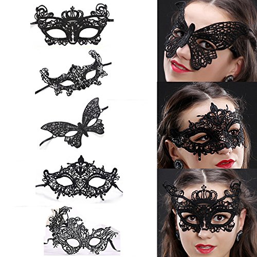 Pack of 5 Sexy Girl Lace Eye Mask for Halloween Masquerade Party Bars (Size 2)