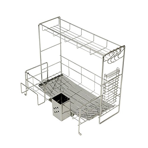 -. Feature : 燕三条製の確かな品質。2段タイプのステンレス水切りラックです。 / 包丁差し、まな板スタンド、箸立て、S字フックの付いたデラックスセットです。 / その日の洗い物の量によって、バスケットをスライドさせて大きさを変えられます。 / 水を受けるトレーもステンレス製で、さびにくく安心です。 / 2段タイプなので、割れやすいものと分けて置くことも。