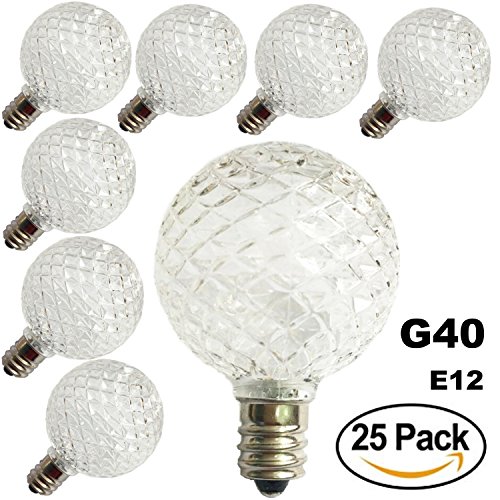 Warm White G40 LED Globe bulbs, 120V/0.5W,fits into C7 or E12 light sockets. Pack of 25pcs bulbs.