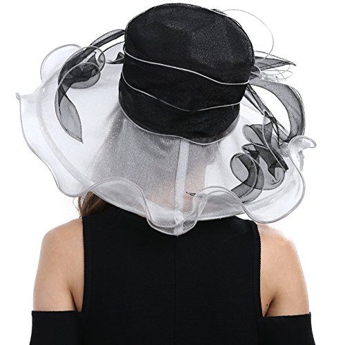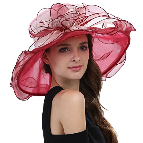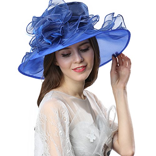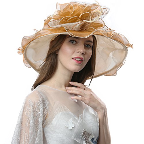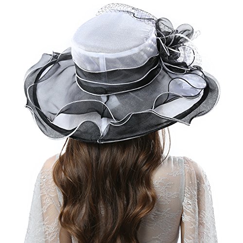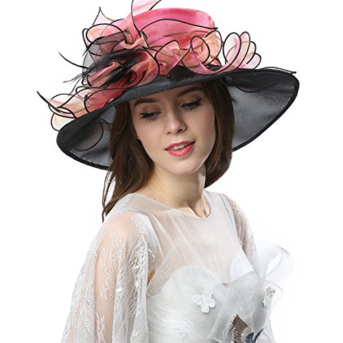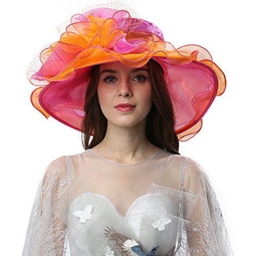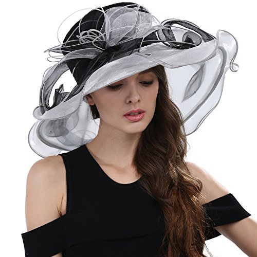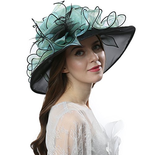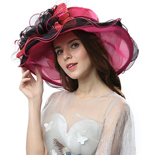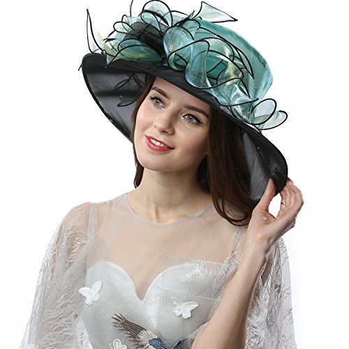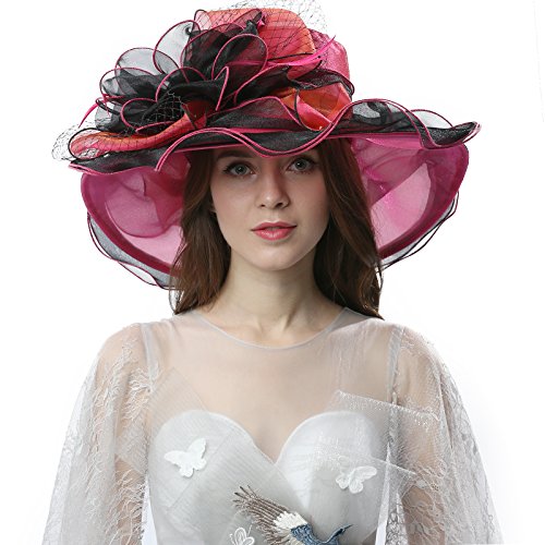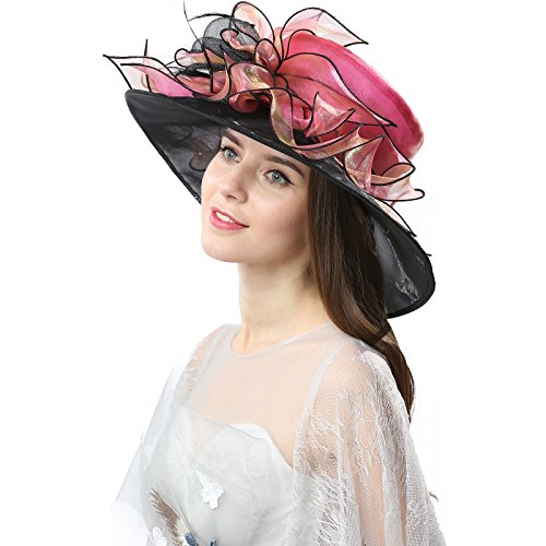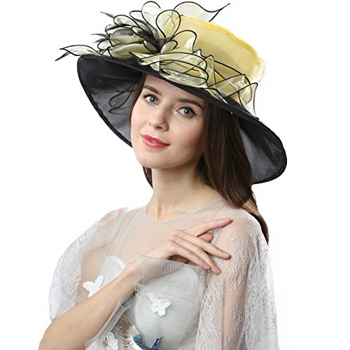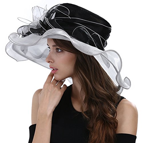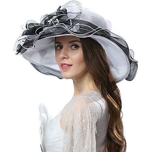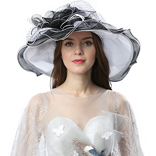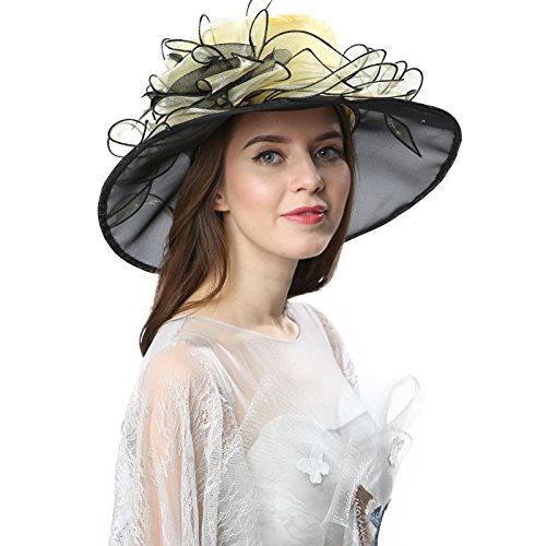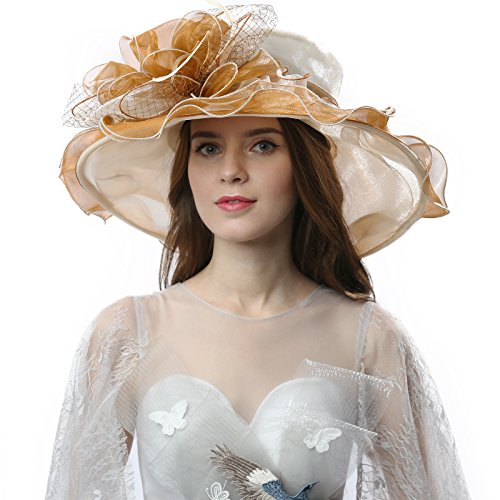 | JaneyRubbins Women's Elegant Organza Wide Brim Hat for Church, Wedding, Paryt, Derby Day |