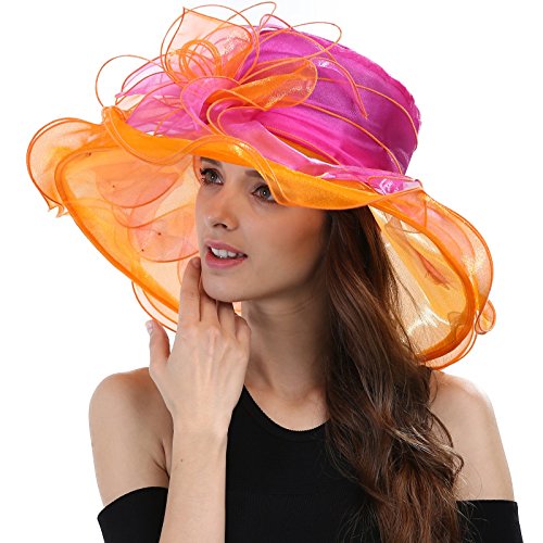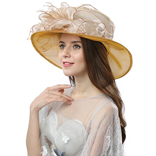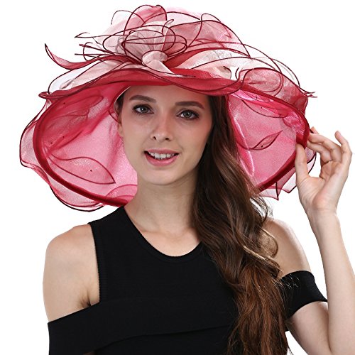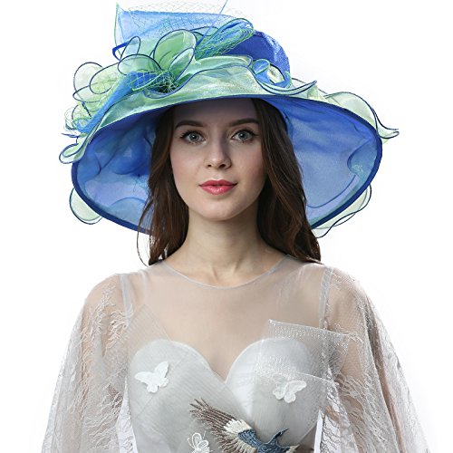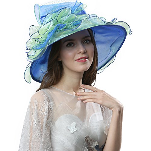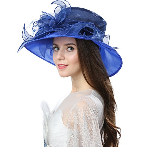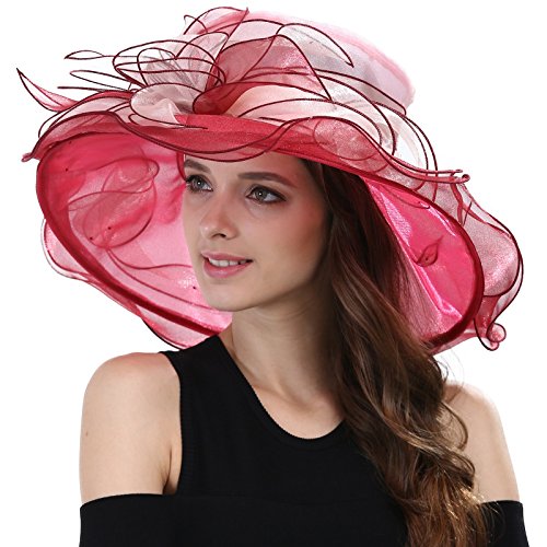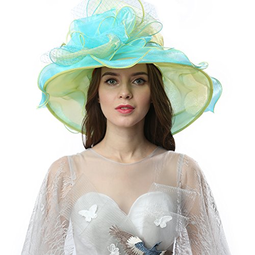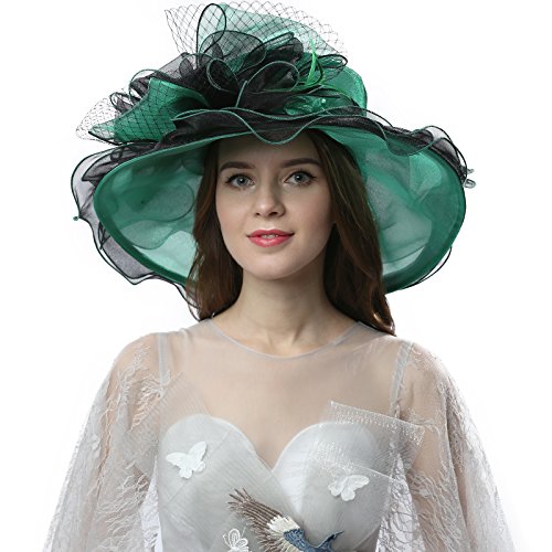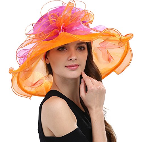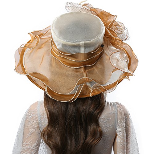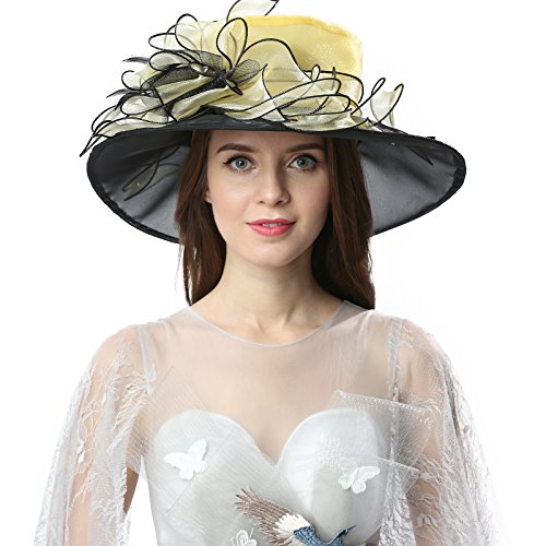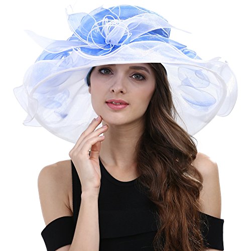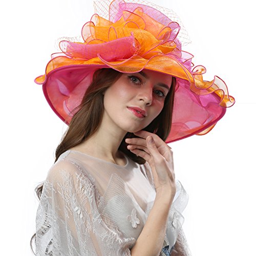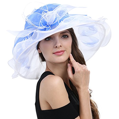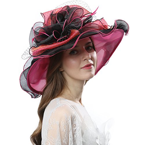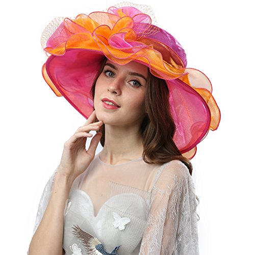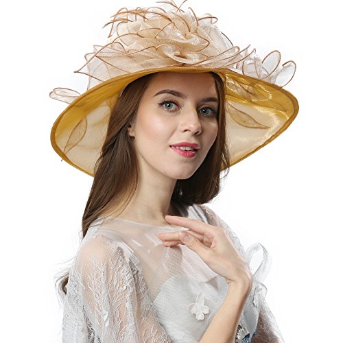 | JaneyRubbins Women's Elegant Organza Wide Brim Hat for Church, Wedding, Paryt, Derby Day |