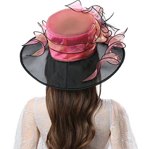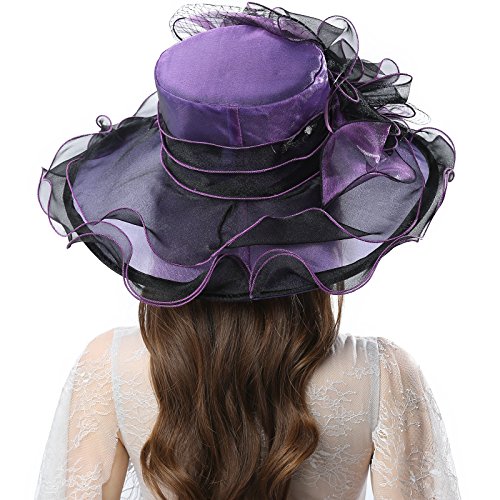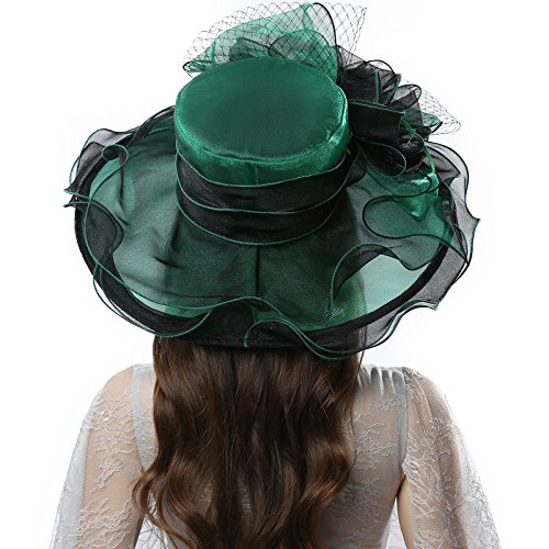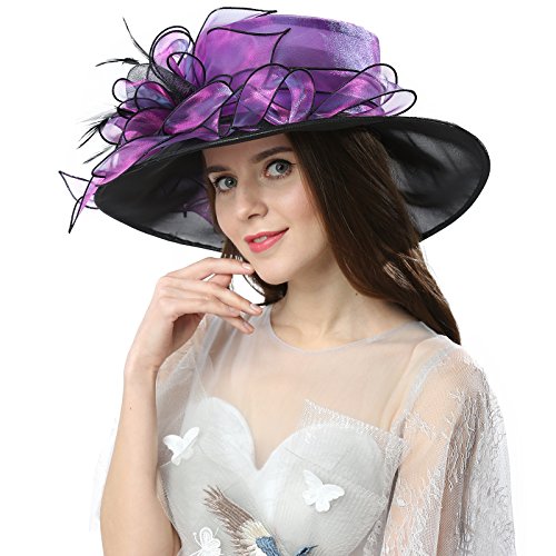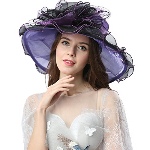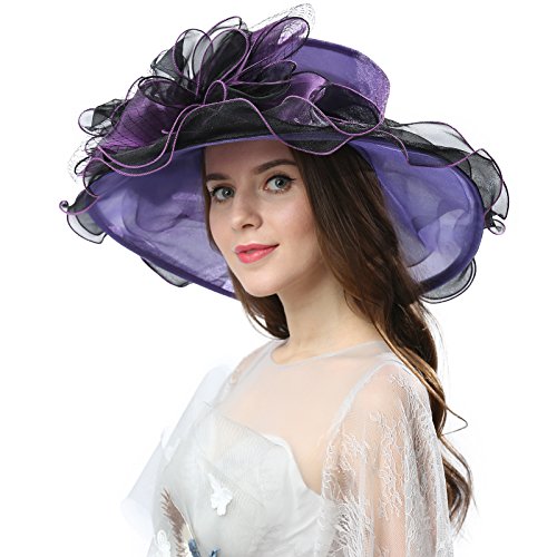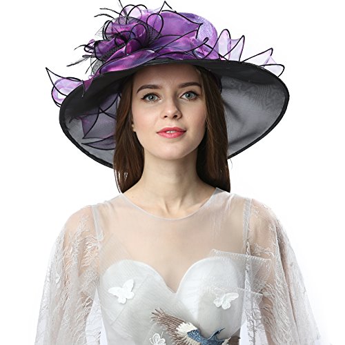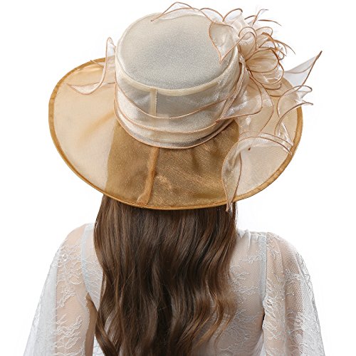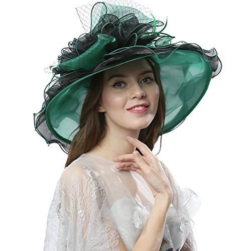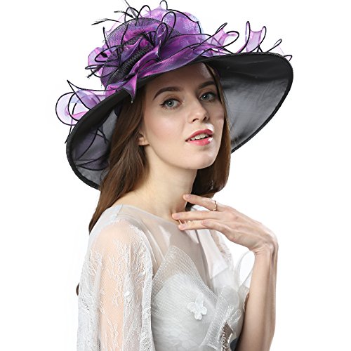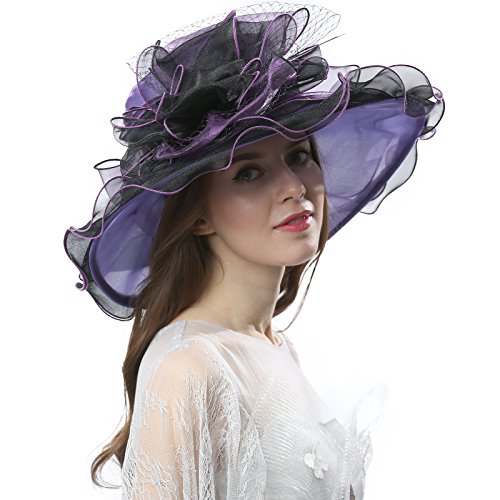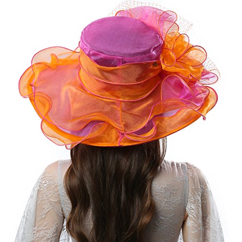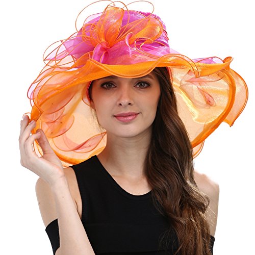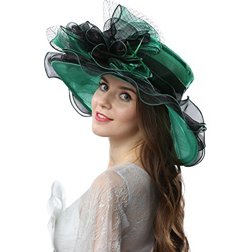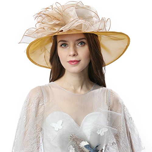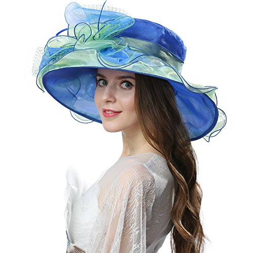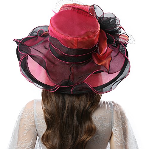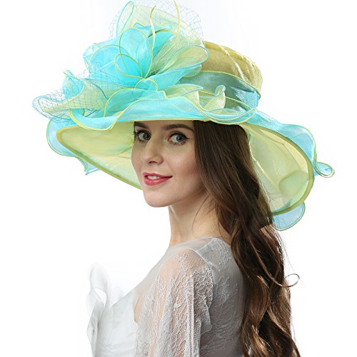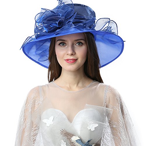 | JaneyRubbins Women's Elegant Organza Wide Brim Hat for Church, Wedding, Paryt, Derby Day |