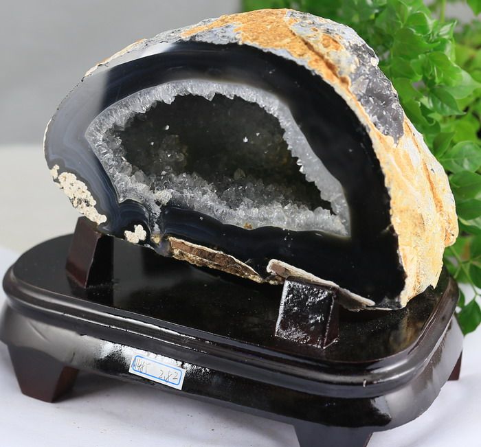此款天然原石水晶洞,中间为一圈一圈的紫罗兰色玛瑙纹路,外壁为十分罕见的招财皇家黄玛瑙,非常特别,十分少见,典型的招财口招财