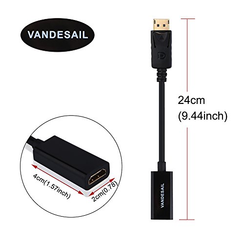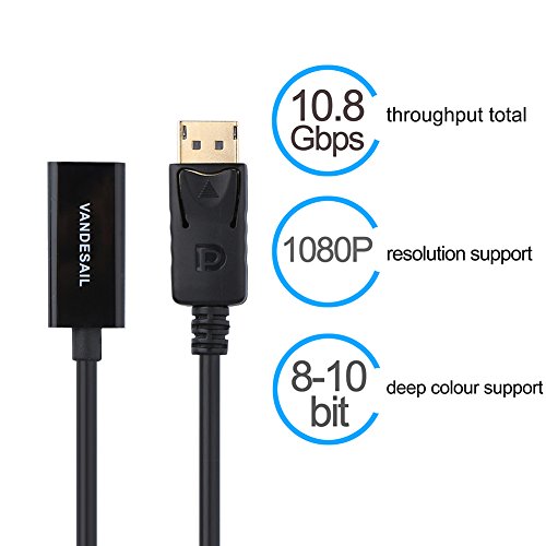 Specifications: -Input: DisplayPort Male -Output: HDMI Female Note: -Connects up to 2 monitors ,an active adapter is required to support more monitors? -This adapter is NOT compatible with USB port on your computer? Supports: resolutions up to Supports resolutions up to 1920x1200 / 1080p. DisplayPort v1.1 ,HDMI V1.3b Compatible. Transfer: -Audio and Video signal up to 10.8Gbps total -Supports 8-bit and 10-bit Deep Color -Triple shielding to reduces interference.? Package Contents: -1XVANDESAIL DP to HDMI Cable 0