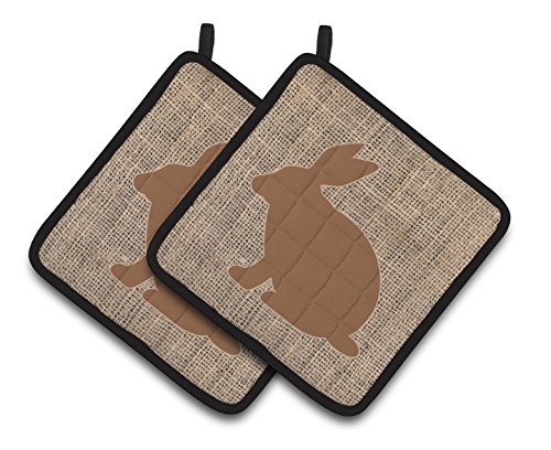 Caroline's Treasures Rabbit Faux Burlap & Brown Pair of Pot Holders BB1002-BL-BN-PTHD, 7.5HX7.5W, Multicolor
