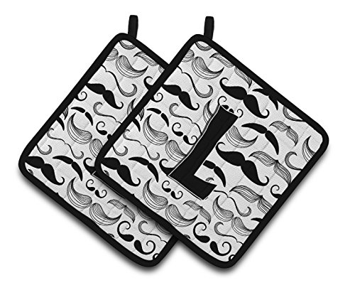Caroline's Treasures Letter L Moustache Initial Pair of Pot Holders CJ2009-LPTHD, 7.5HX7.5W, Multicolor