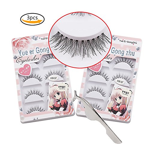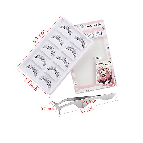Teenitor False Eyelashes Bulk, Korean Style Thick Crisscross Long Fake Eyelashes Natural HW-57 With Free Tweezer 10 Pair