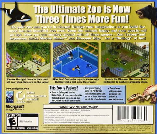 Combines The Original Zoo Tycoon, Dinosaur Digs expansion pack, Marine Mania expansion pack.