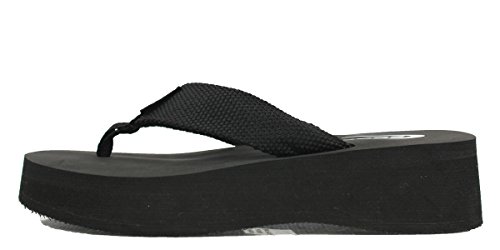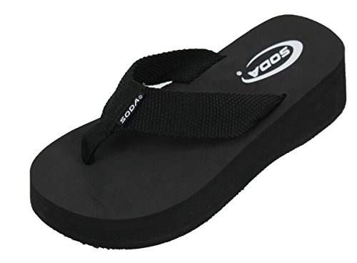 Soda Women's Aiken Flip Flop Thong Platform Wedges Sandals Eva 1 3/4", Black, 9 M US