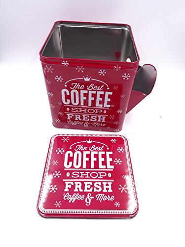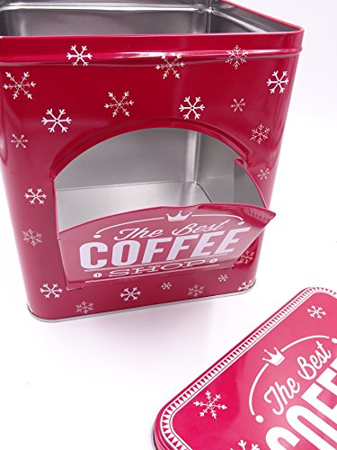 Red Coffee Beans storage container ,shabby chic ,with a small drawer like opening on the side for easy excess to the beans