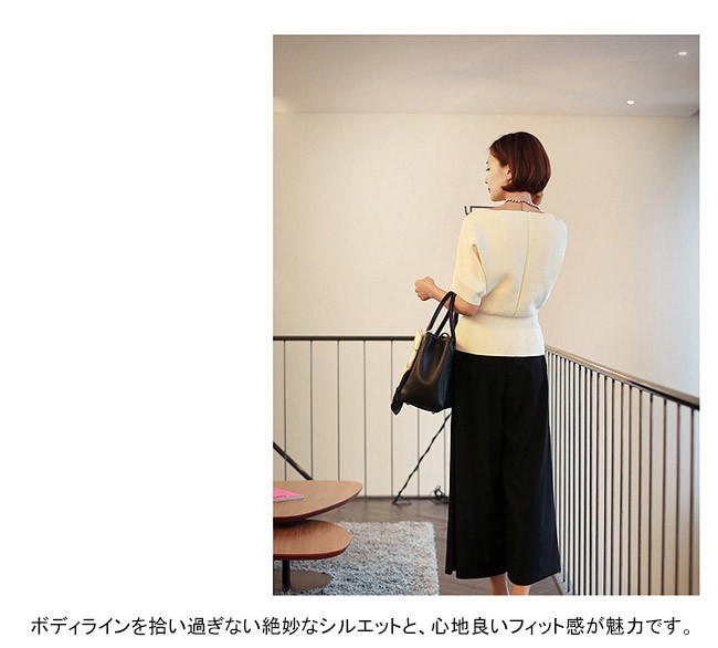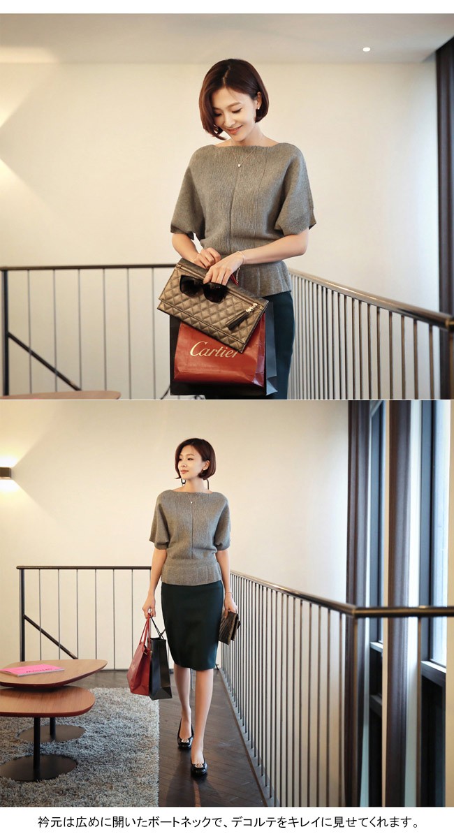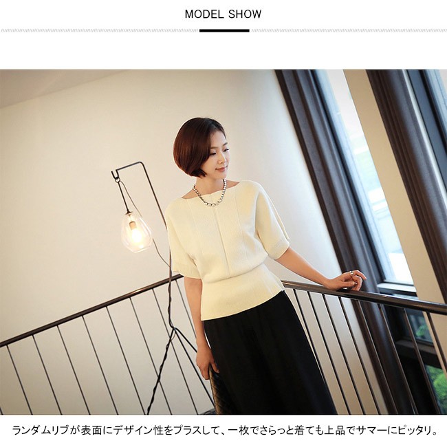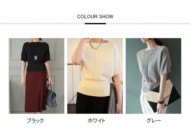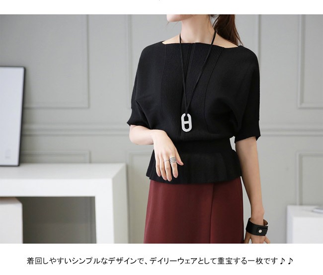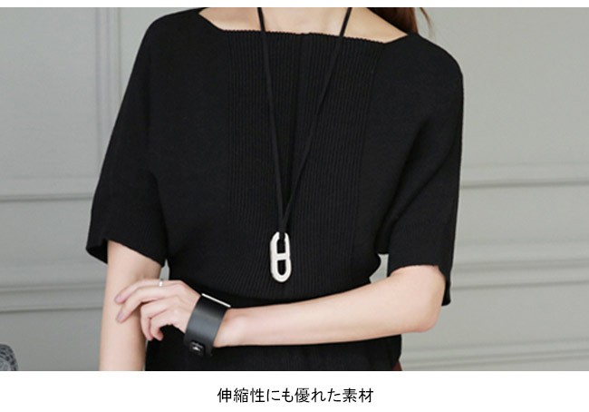 | 商品名 | ニットトップス カットソー インナー レディース シンプル 無地 ボートネック フレア 着痩せ 美ライン 半袖 ハイゲージニット 春 夏 秋 新作 |