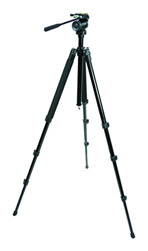 - Sturdy aluminum tripod adjusts in height from 18.9 inches to 70.5 inches and includes a two-way fluid pan head with quick release plate.