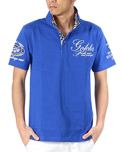 (GOTCHA 골프) GOTCHA GOLF 폴로 셔츠 보타니카루무늬 사용해 [접촉랭감] 72GG1205 블루 M사이즈