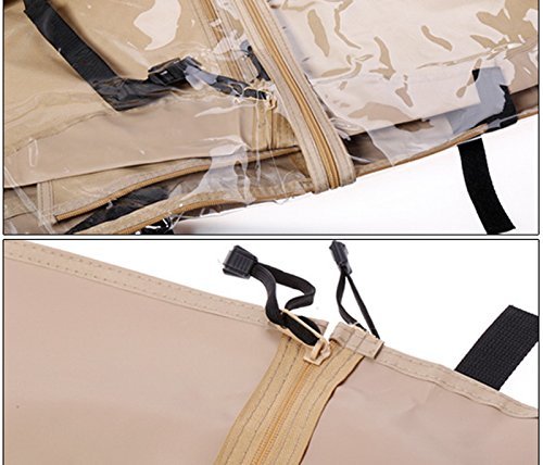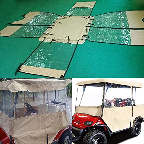 Features: 100% Brand New Item Color: Khaki Product Size: 150cm x 119cm x 130cm ( L x W x H ) (1inch=2.54cm) Package Size: 70cm x 15cm x 44cm ( L x W x H ) ?(1inch=2.54cm) Item Type: Golf Cart Rain Enclosure Handy carrying bag Is included for easy transport and storage? 0 |