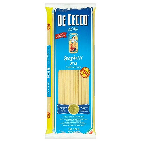 -. Binding : Misc. -. Brand : De Cecco -. EAN : 0721865126116 -. Feature : Please be aware that unless expressly indicated otherwise, Cooking Marvellous are not the the manufacturer of this product. Product packaging may vary from what is shown on this listing. We recommend that you do not rely solely on the information presented on our listing. Please always read the labels, warning and directions provided before using or consuming the product. -. Label : Groceries -. Manufacturer : Groceries -. MPN : GFC163063 -. PackageQuantity : 1 -. PartNumber : GFC163063 -. ProductGroup : Grocery -. ProductTypeName : GROCERY -. Publisher : Groceries -. Studio : Groceries -. Title : De Cecco Spaghetti (1Kg) -. UPC : 721865126116
