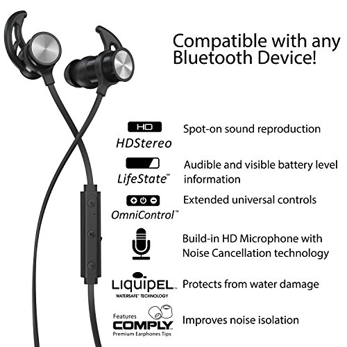 HD SOUND - 8mm Speakers combined with Bluetooth 4.1 create super accurate HD sound with powerful bass. The bullet-shaped Comply T-400 M memory foam tips provide Total Isolation from external noise.