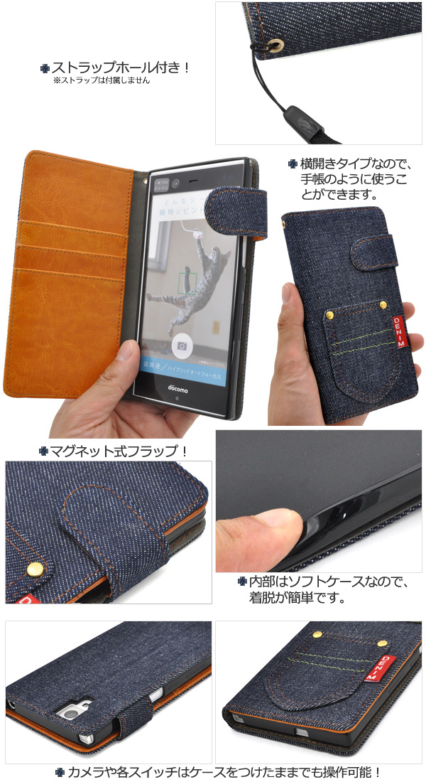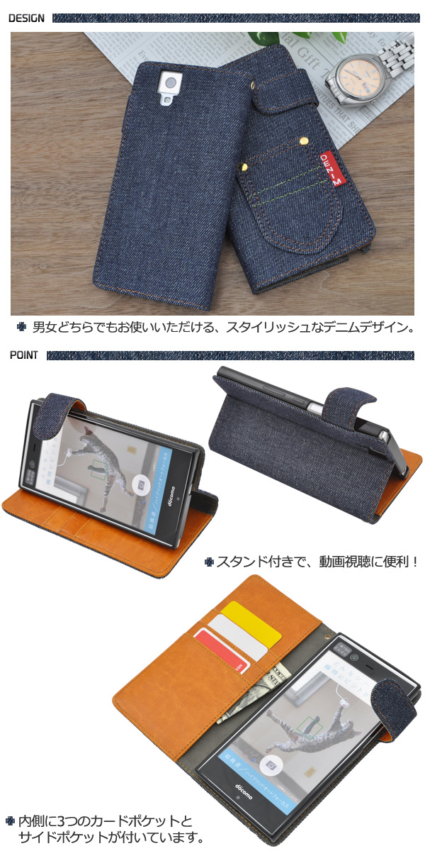 デニムデザインのarrows NX F-02H用スタンドケースポーチ。 衝撃やキズなどからarrows NX F-02Hを守ります。 内部ケースはソフトケースなので、着脱が簡単です。 男女どちらでもお使いいただける、スタイリッシュなデニムデザイン。 内側は落ち着いたレザーデザインです。 背面を折り返すとスタンドとして使用できるので、動画視聴に便利です。 落下防止に便利なストラップホール付きです。 横開きタイプなので、手帳のように使うことができます。 また、内側に3つのカードポケットとサイドポケット付きです。 ※arrows NX F-02Hは付属しません。 ※ライセンス商品ではありません。 |