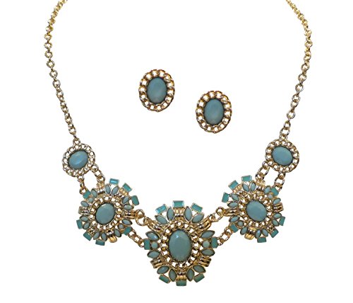 Gold tone chain and mint green geometric shaped accents make a simple statement in this 18-20 inch bib necklace and earring set. Wear it on the weekends with a white shirt and jeans or for a night out with your little black dress, the beauty of this necklace is its versatility. This matching set makes a great gift for the fashionista in your life and will be delivered to you in a box appropriate for gift giving