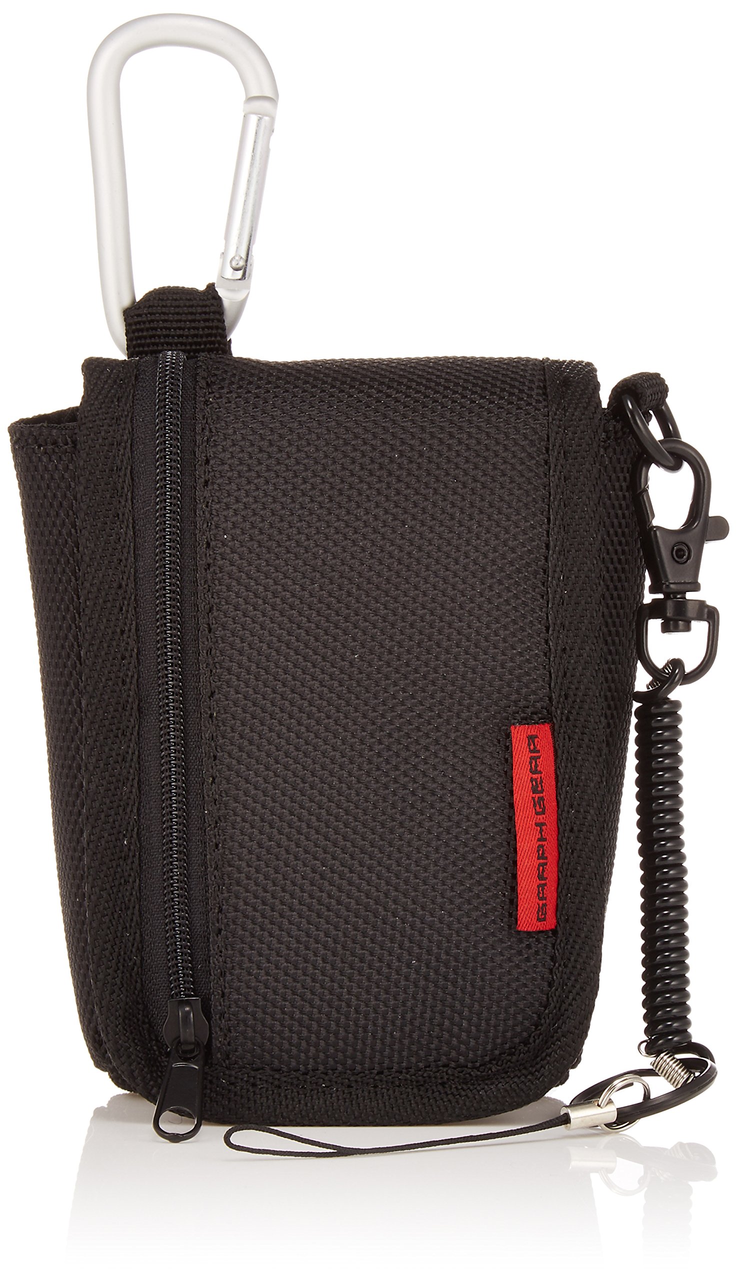 ● With a spiral strap to connect the camera body to the case ● With a carabiner that can be easily attached to various places ● With a zipper pocket that can store memory etc ● With a snap type belt loop securely on the belt