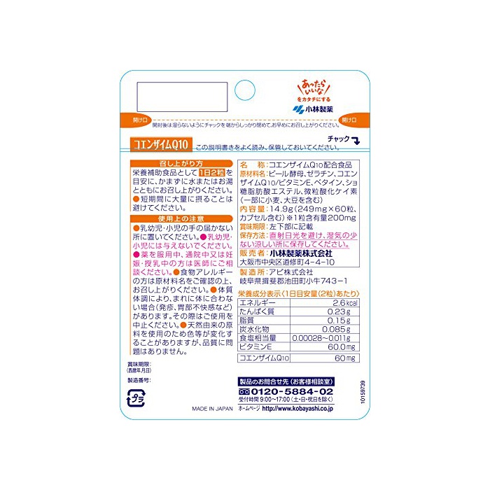 원본상품명: 小林製?の?養補助食品 コエンザイムQ10 約30日分 60粒