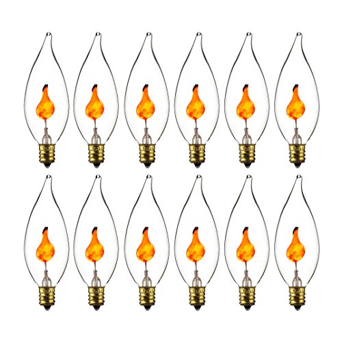 Sunlite 3CFC/12PK 3W Halloween Incandescent Chandelier Flickering Flame Light Bulbs with Candelabra E12 Base and Crystal Clear Bulb (12 Pack)