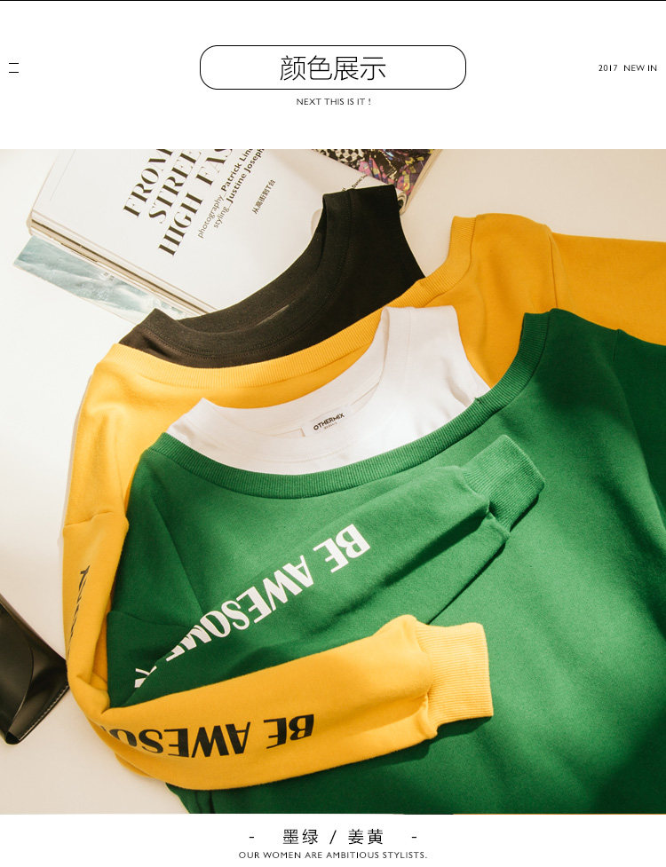 | 面 料:卫衣版:面料1: 棉 面料2:93.1%棉 6.9%氨纶 卫衣裙版:95.5%棉4.5%氨纶颜 色:墨绿色、姜黄 |