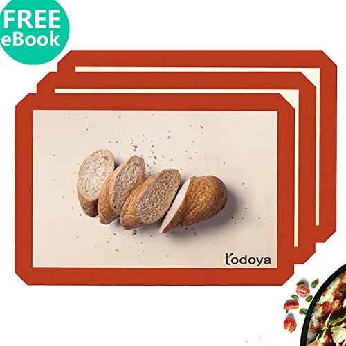 Silicone Baking Mat Non Stick Silicon Liner Set of 3 Half Sheet Size 16 1/2“ x 11 5/8” Mat for Baking Sheets Nonstick Pans and Rolling Macaron Cookie Bread Pizza Pastry Making Professional Grade Safe